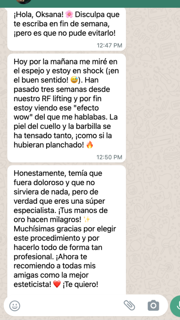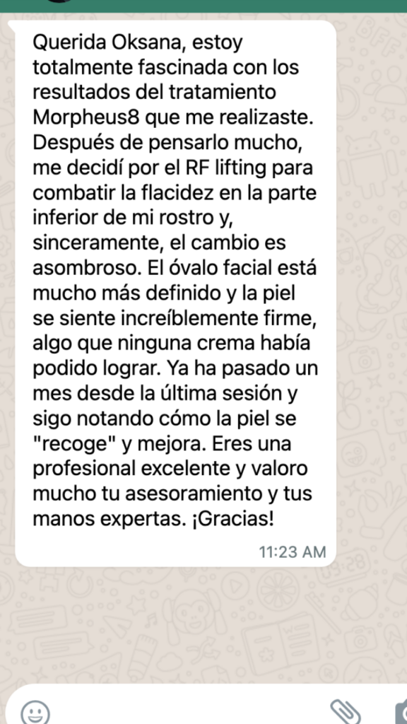 Su procedimiento será realizado por Ksenia Hryshchenko , una cosmetóloga con 8 años de experiencia y una especialista experimentada en el campo de la cosmetología de hardware.